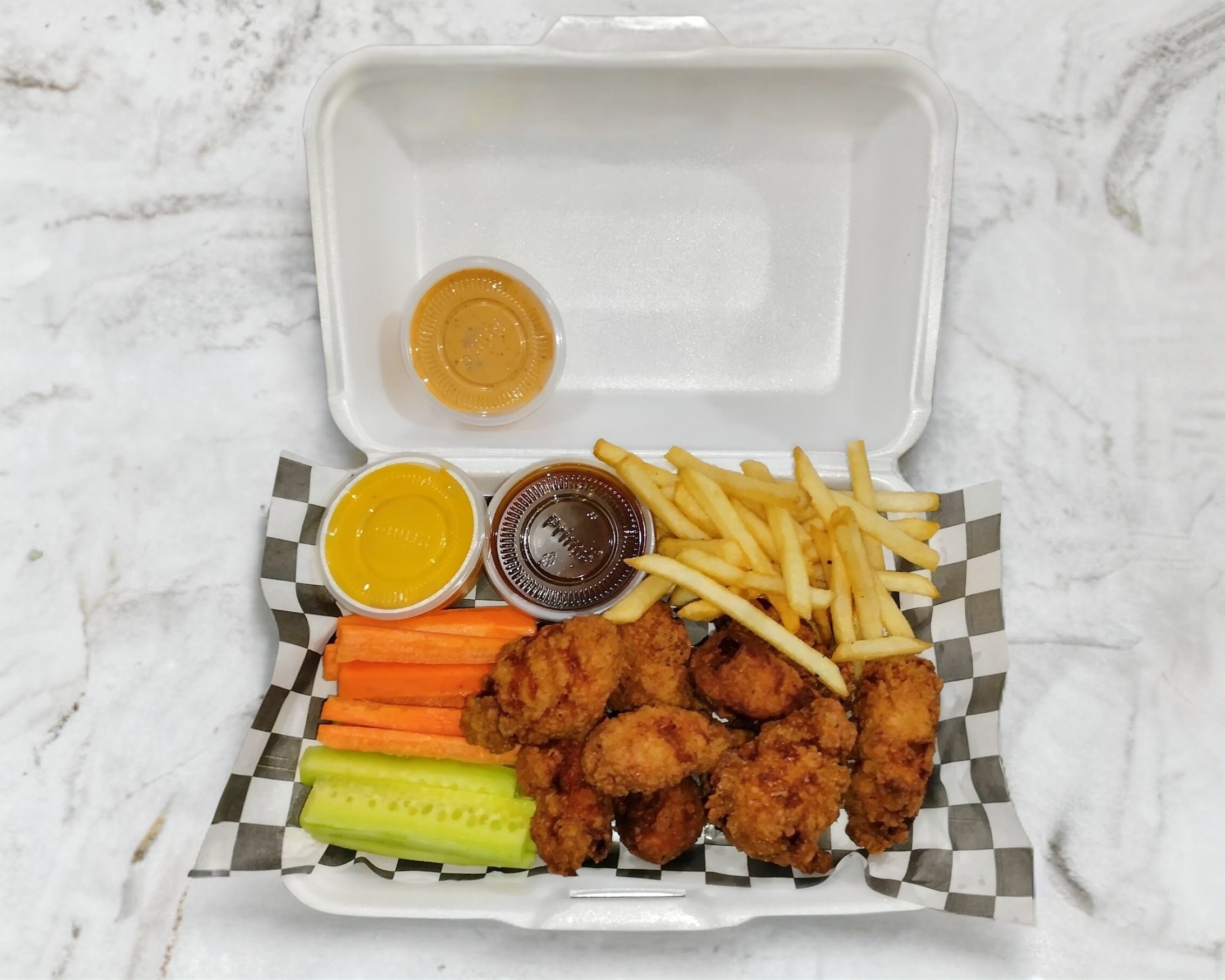 Boneless 150 gramos acompañado de pepino y zanahorias