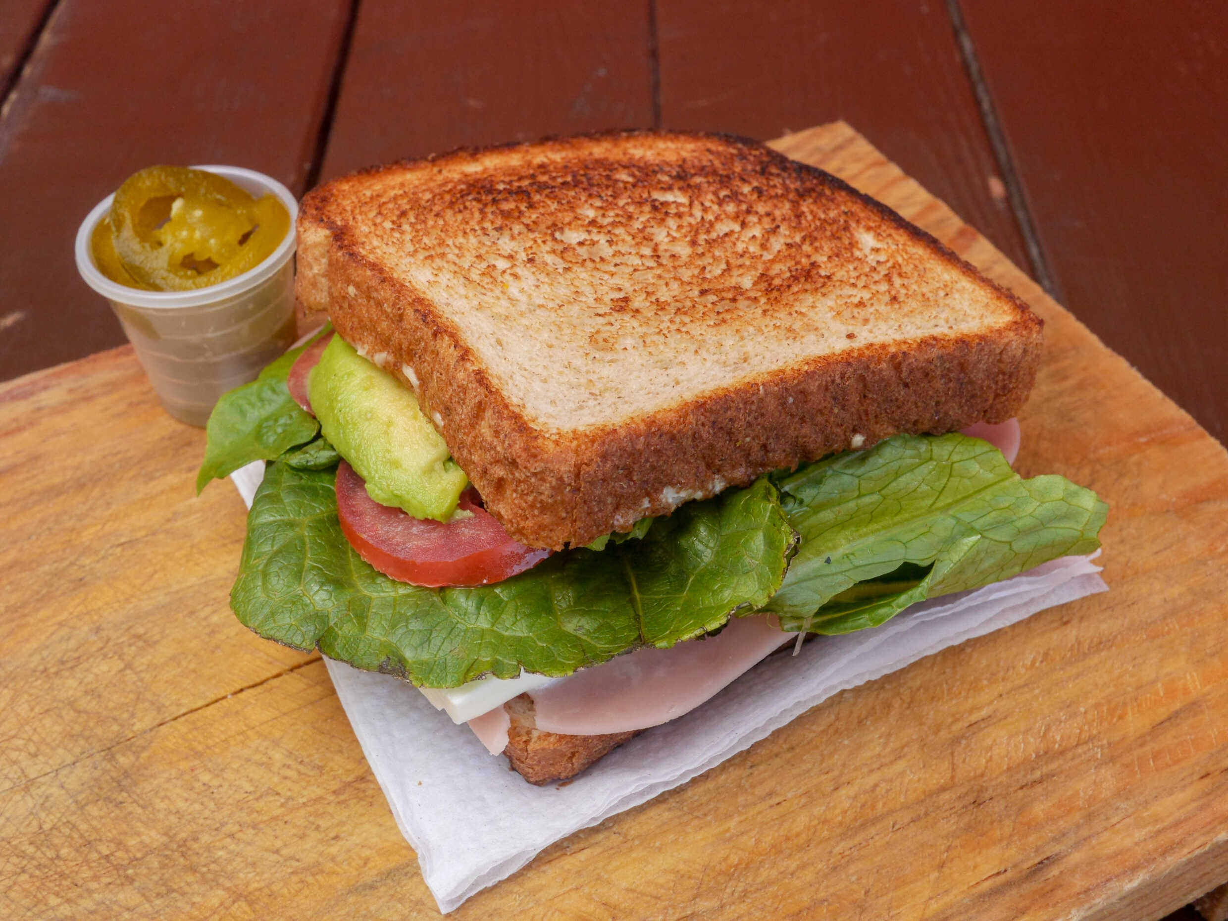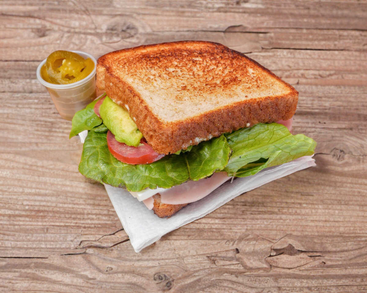Jamón, queso amarillo, lechuga, tomate, aguacate.