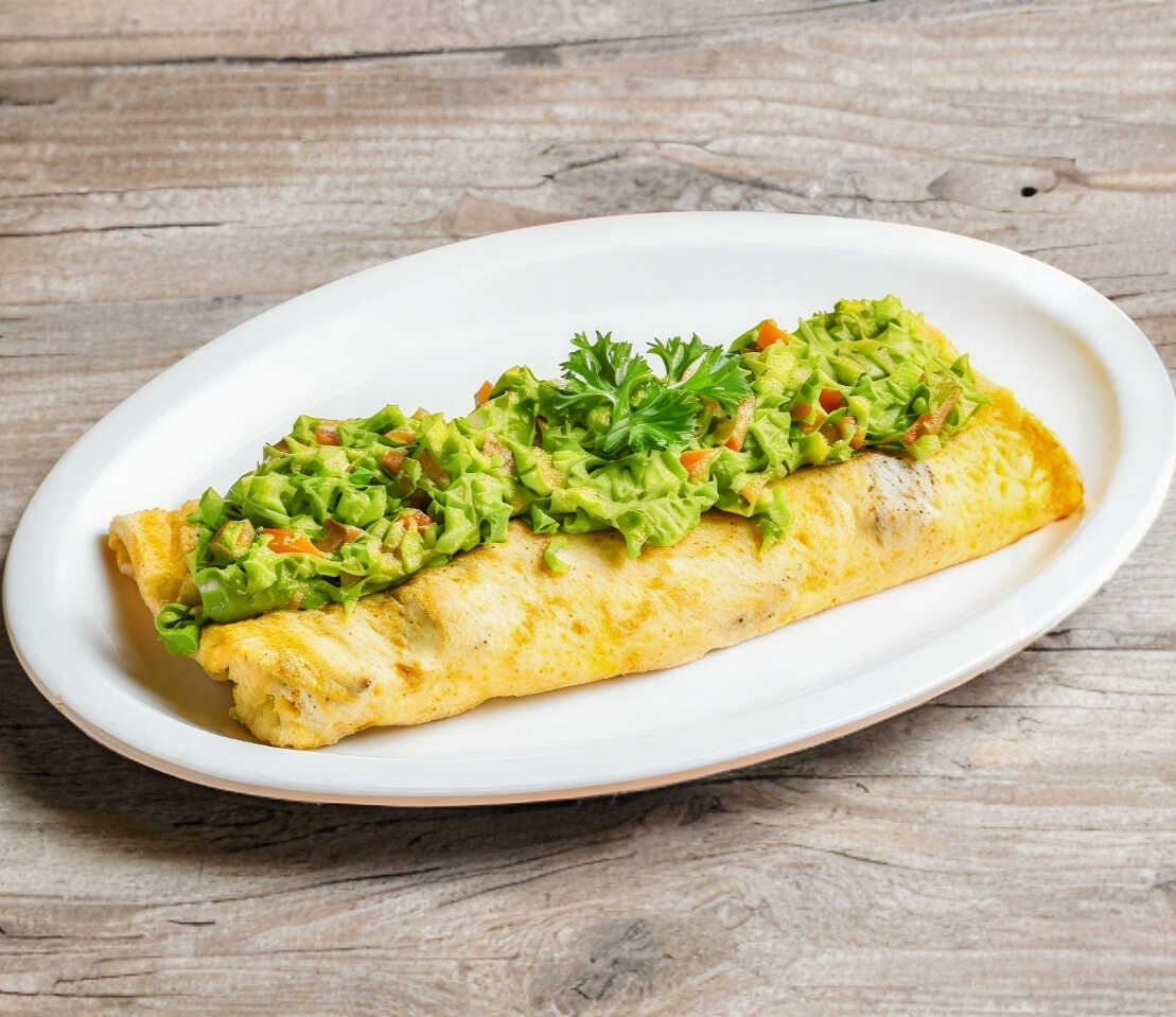 2 Huevos estrellados, pan pita, queso oreado a la plancha, aguacate y tomate.