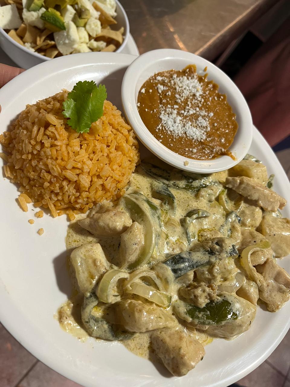 Chilaquiles con chicharrón en salsa verde, rancheros o natural, incluyen frijoles puercos.