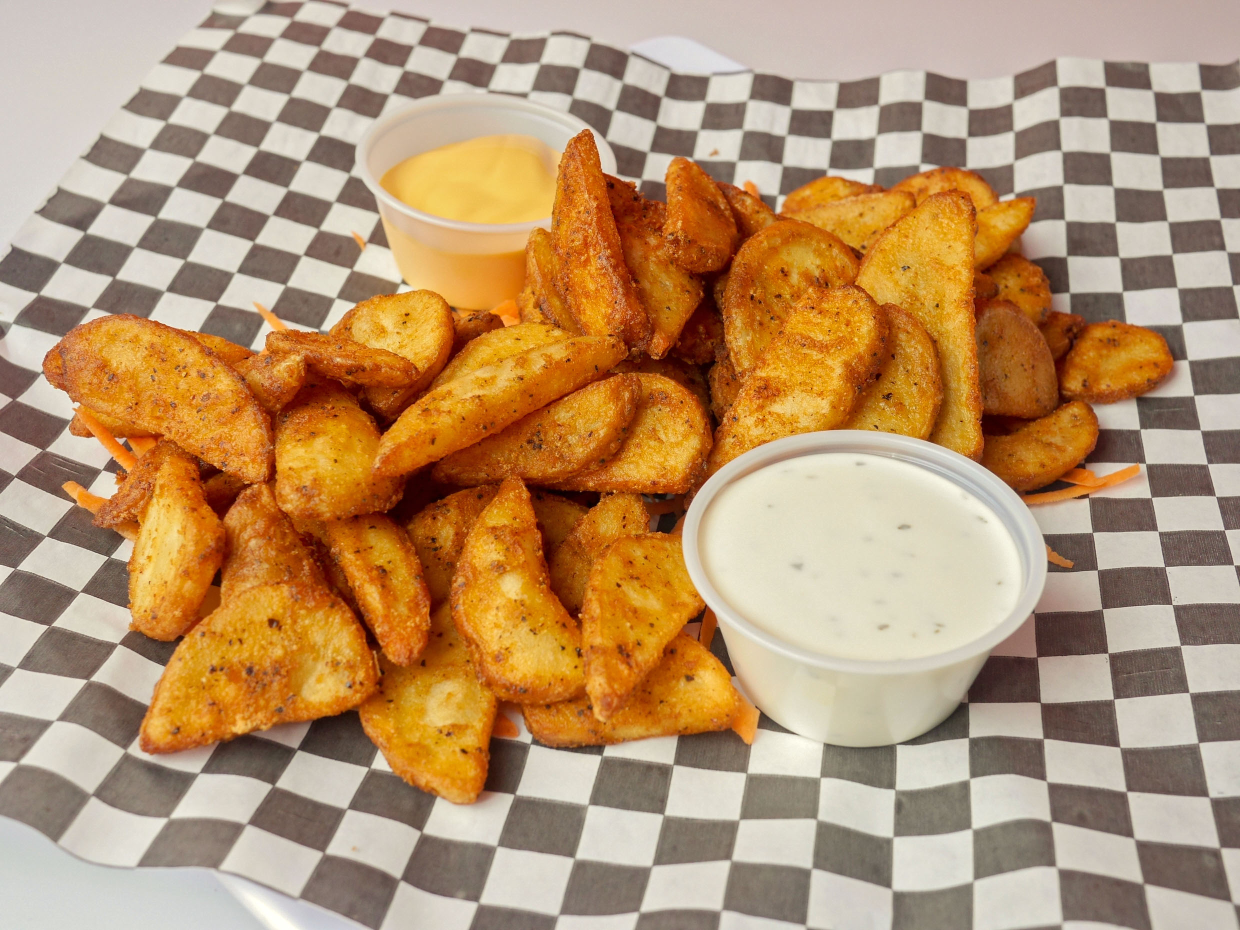 Gajos de papa sazonados.