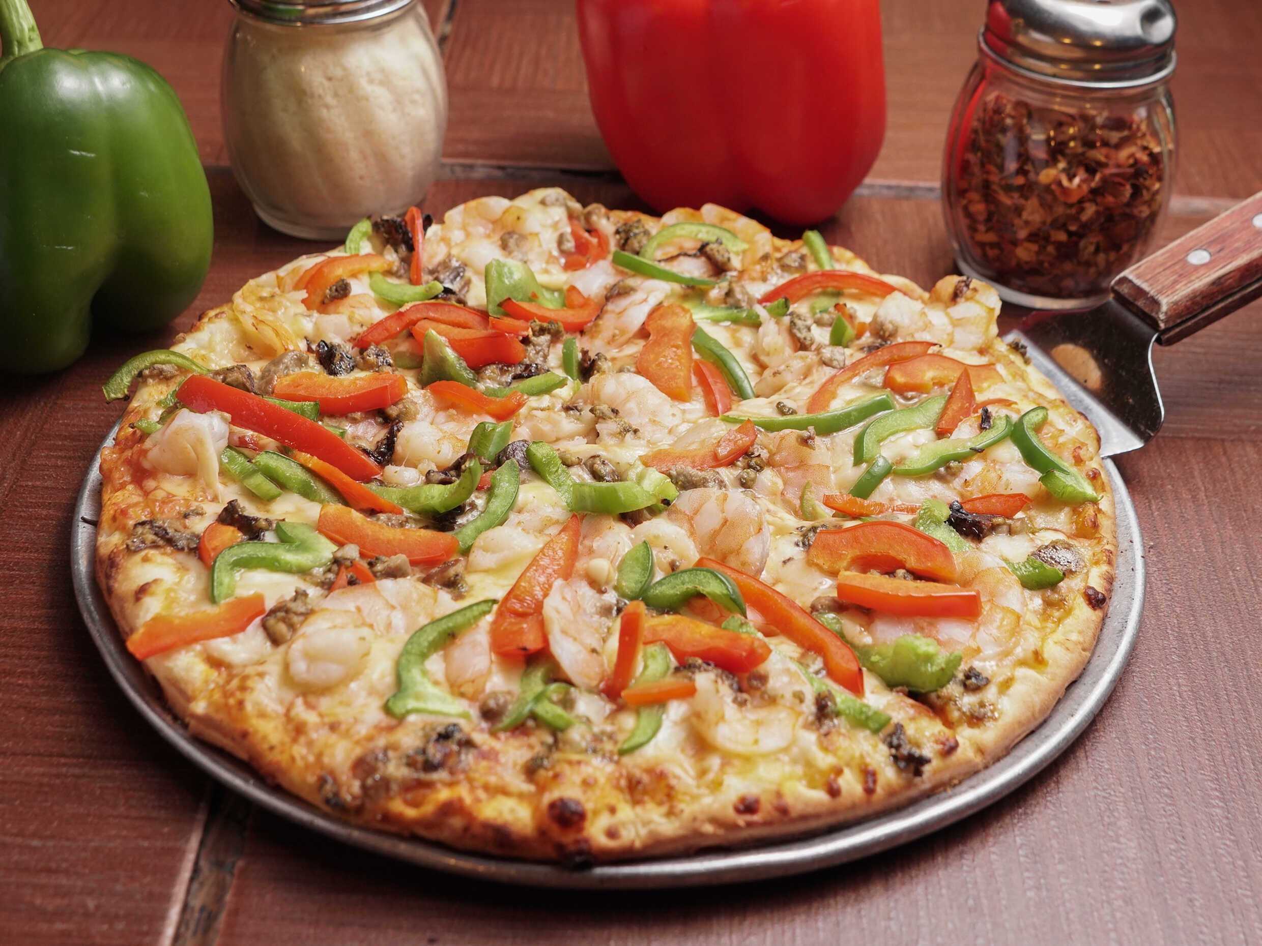 Pizza Familiar de Carnes frias (jamón, salami, tocino, chorizo, cebolla y jalapeño)