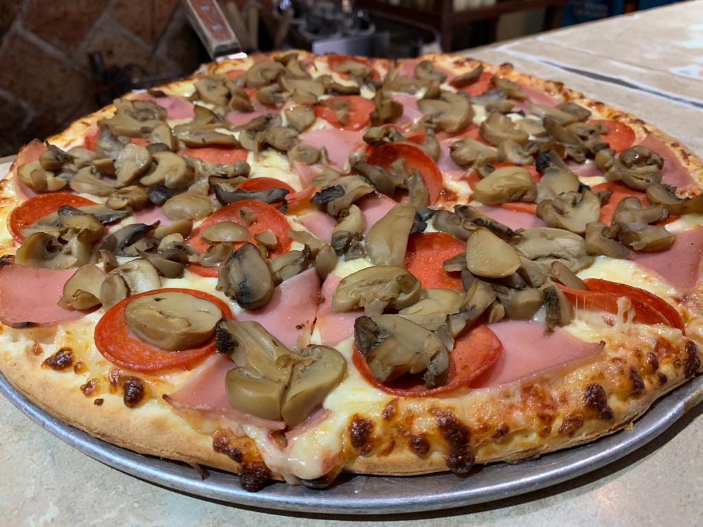 Pizza Familiar TRADICIONAL (jamón, salami, champiñón)