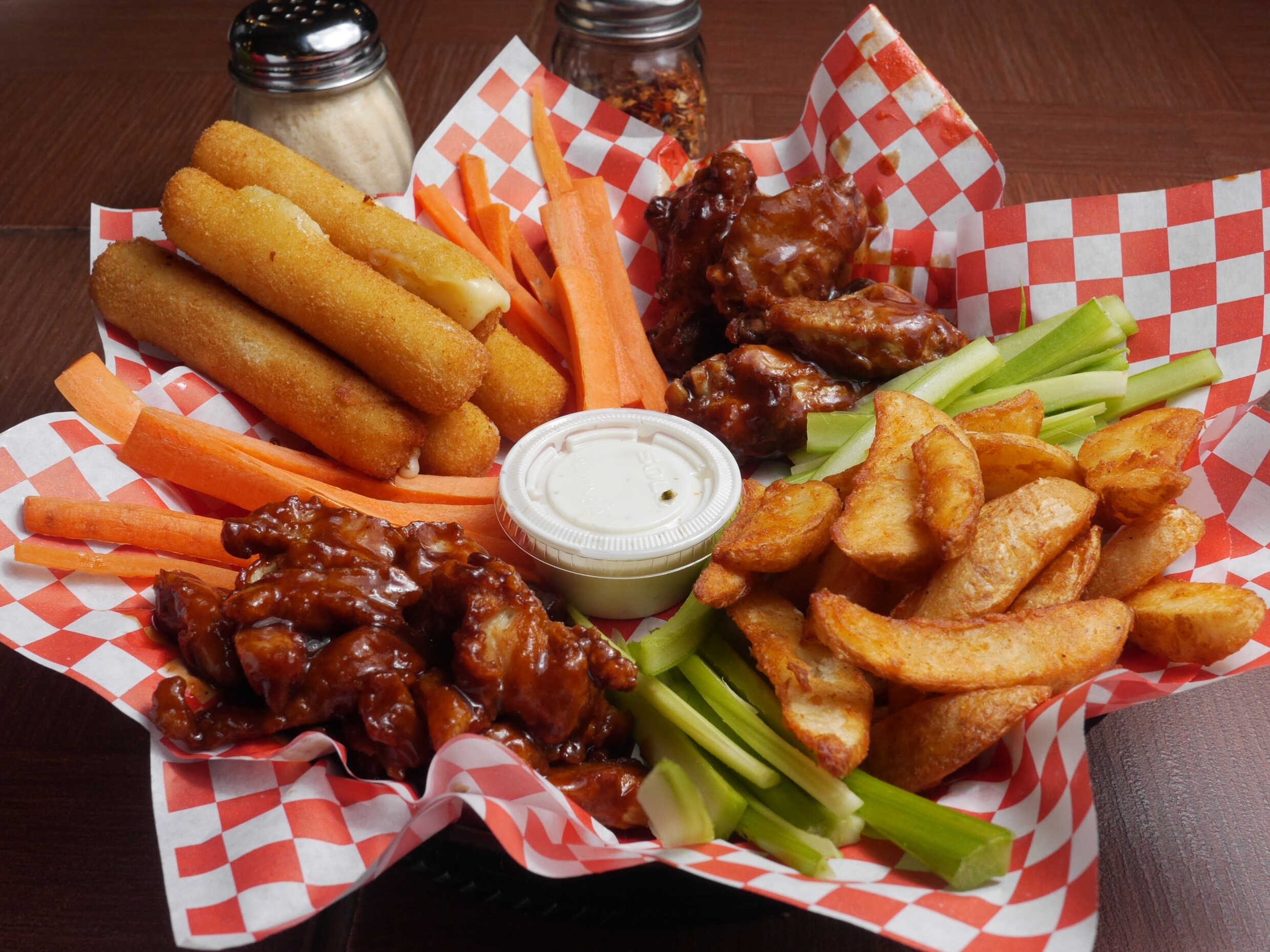 ALITAS DE POLLO acompañadas con apio, zanahoria y ranch)