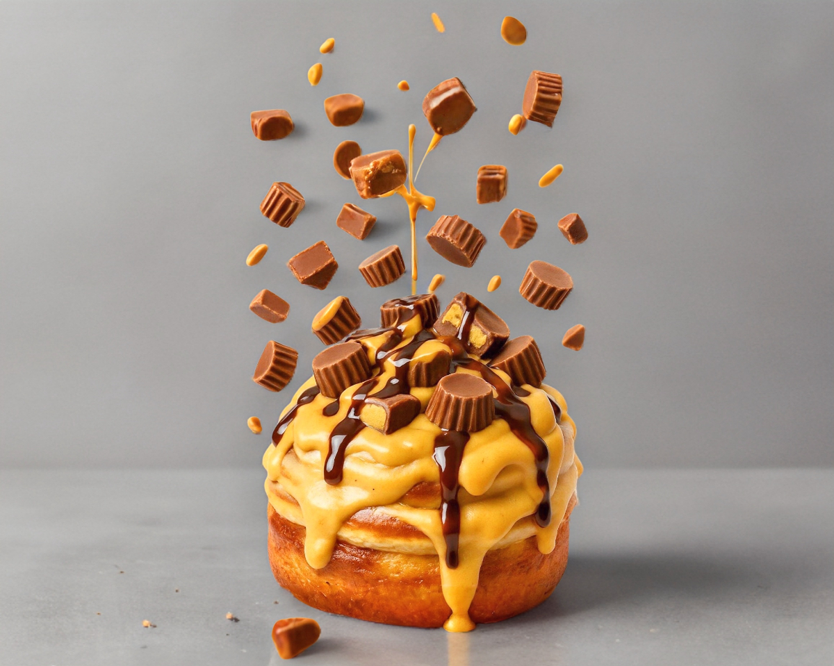 Rol de canela glaseado con caramelo y chocolate Reeses
