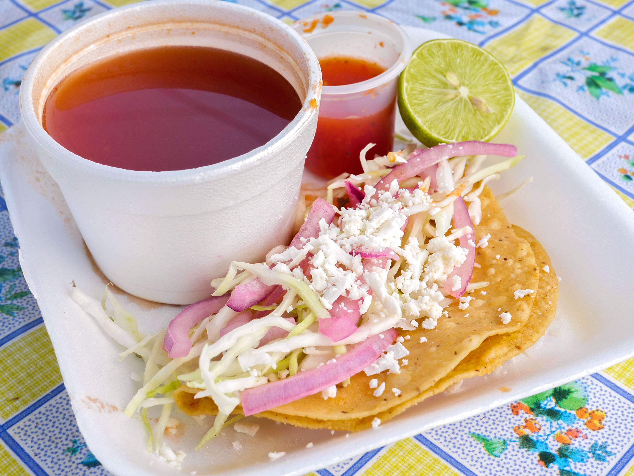 Jugo de tomate para acompañar a los tacos.