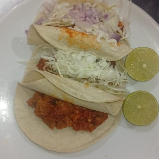 3 tacos de chicharron en salsa roja promocion
