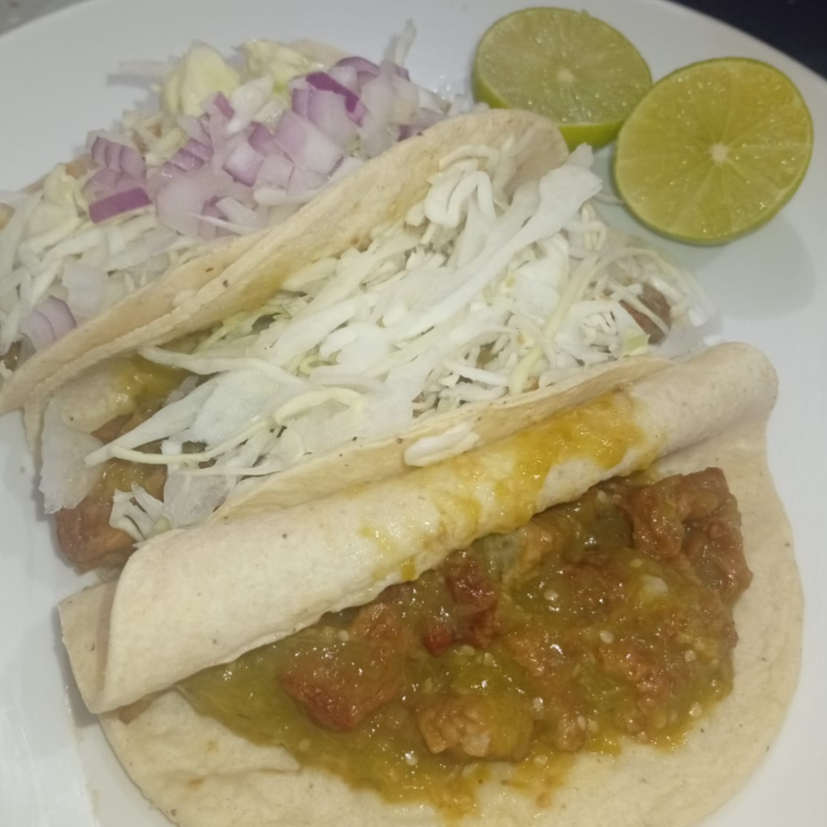 3 Tacos de Chicharron en Salsa Verde