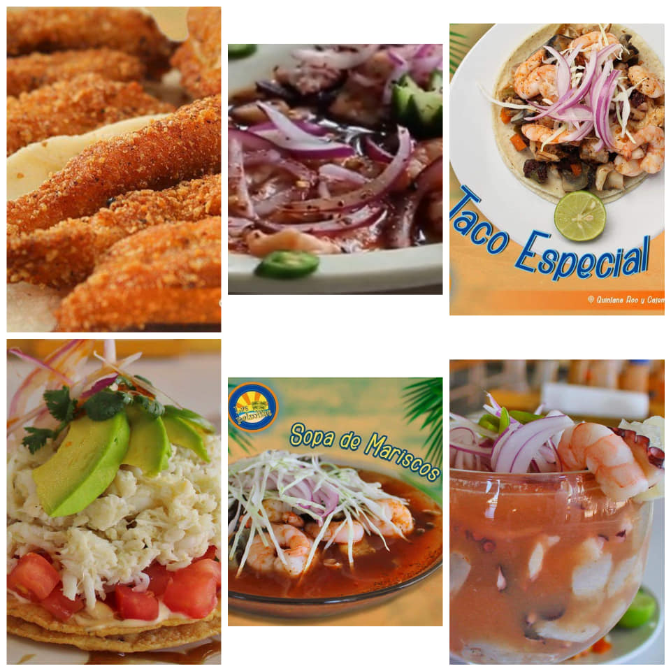 Aleta, camarón, pulpo, calamar, caracol y manta.