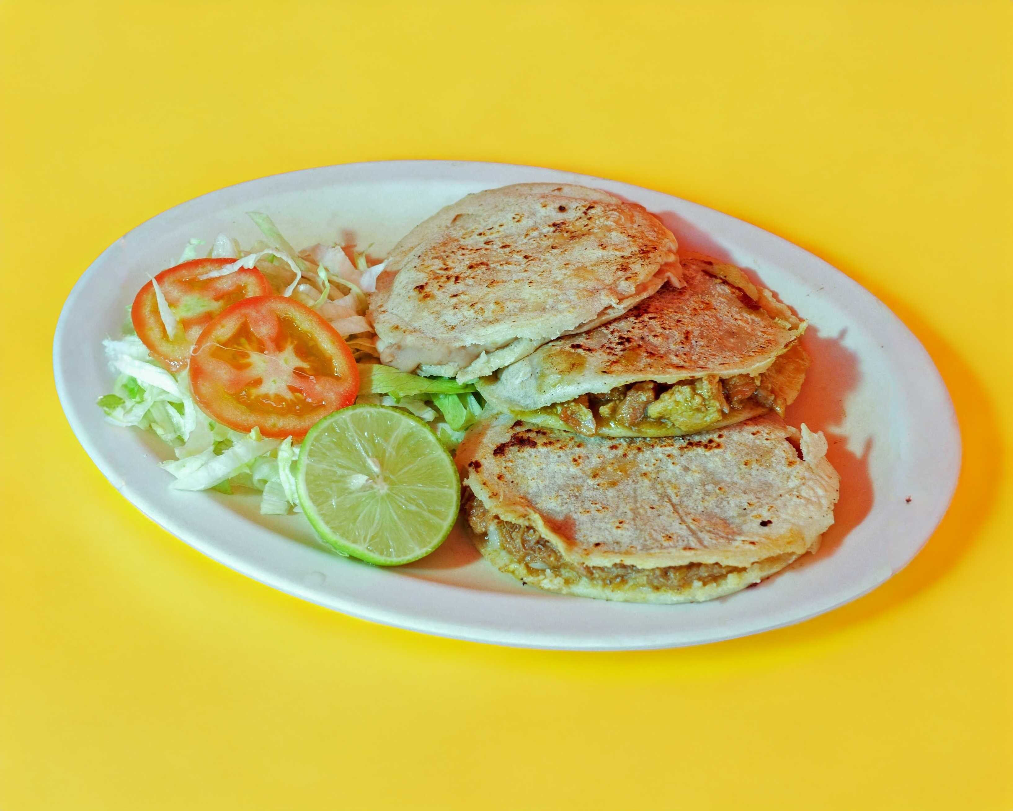 3 Gorditas (guisos a escoger), ensalada al lado y un refresco de lata a escoger.