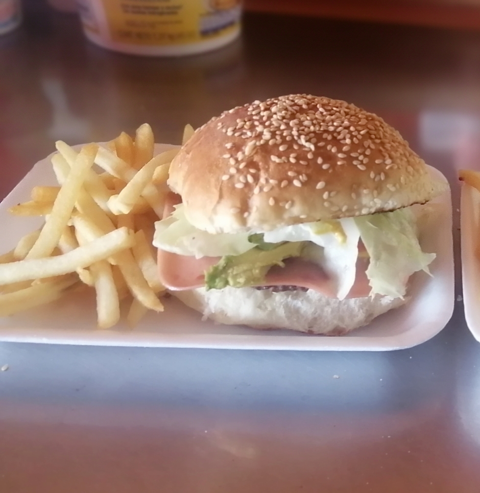 Carne 100% casera, queso amarillo, jamón, verdura y cátsup.
