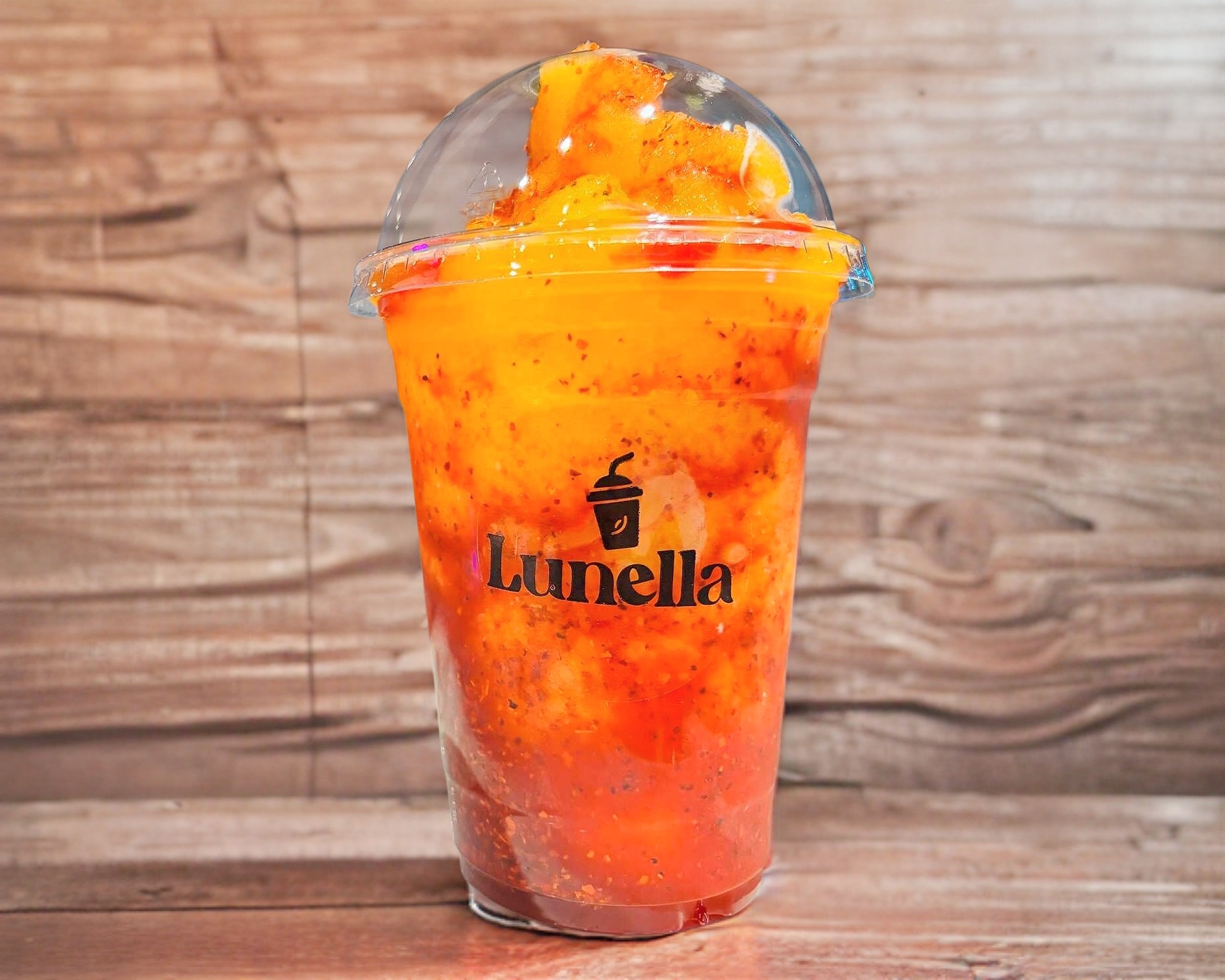 Raspado sabor mango con un toque picoso de chamoy y tajin