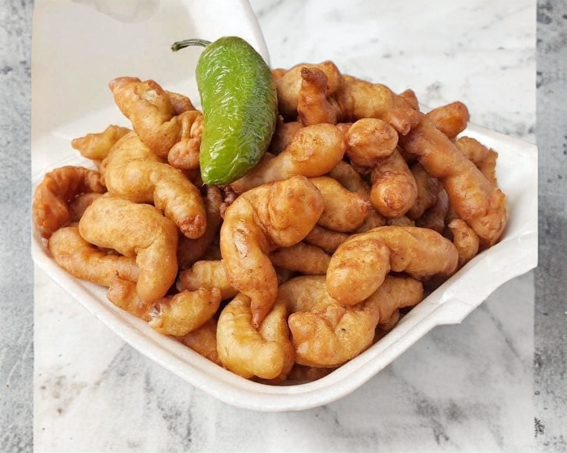 Riquísimos camarones capeados.. Incluye salsa, verdura, aderezo, 10 tortillas y chiles toreados