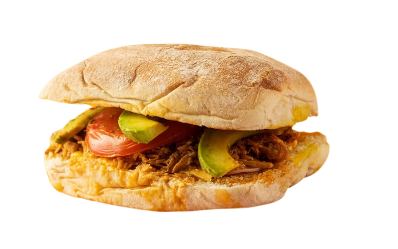 Carne de pierna, jamón, queso, aguacate y tomate.