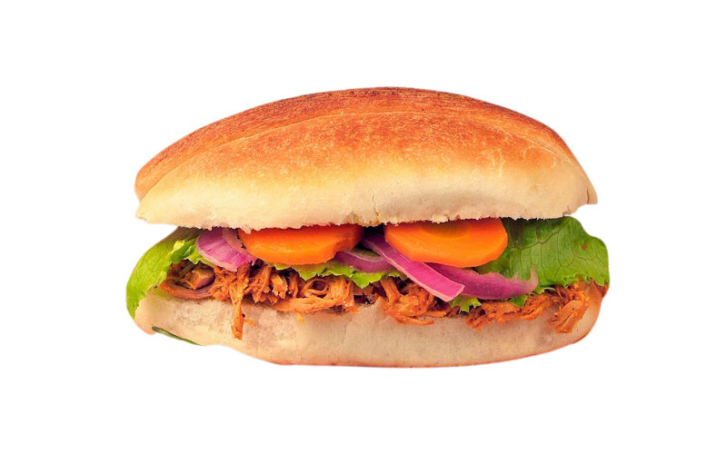 Cochinita, lechuga, cebolla morada y zanahoria.