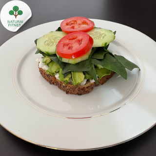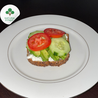Pan tostado de linaza, aguacate, espinaca, tomate, pepino y cottage.