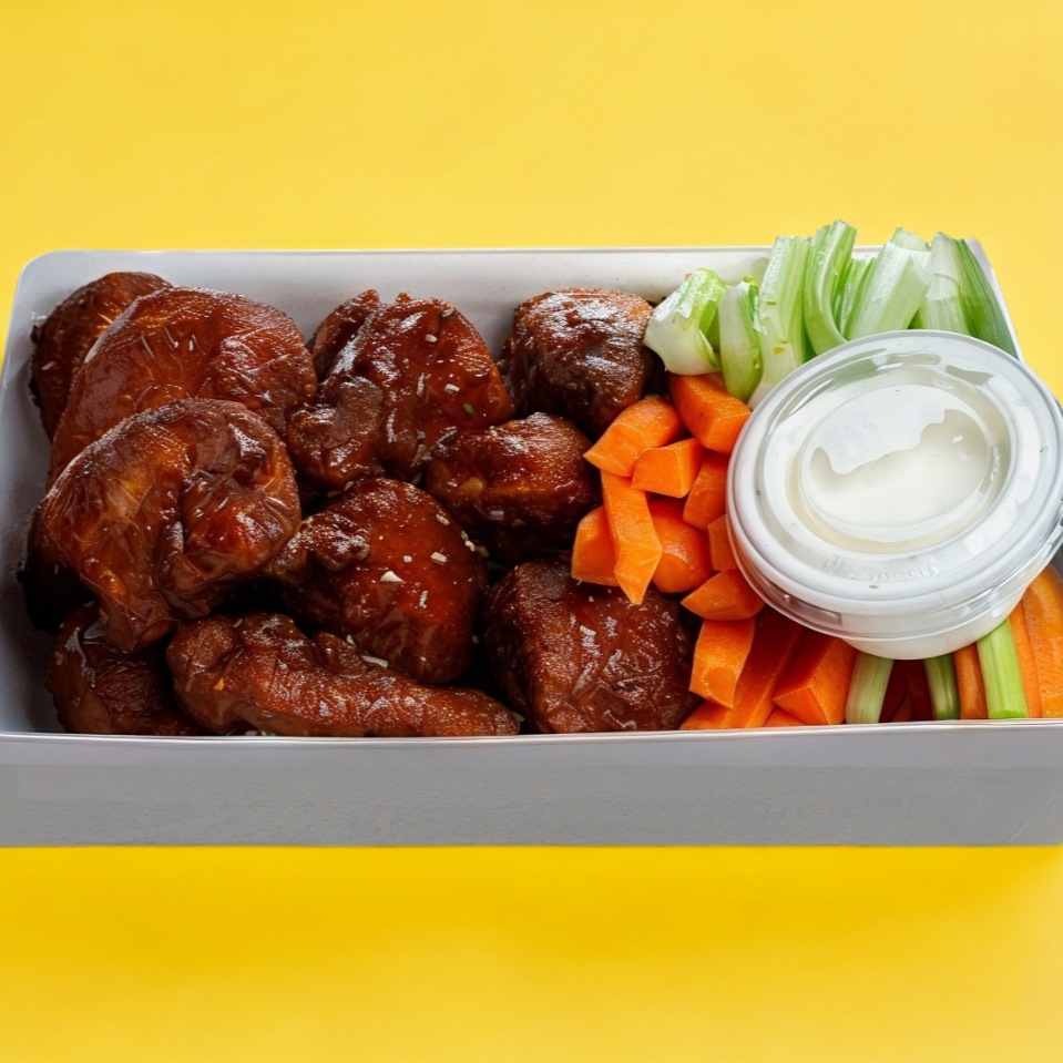 250 gr. De pechuga de pollo empanizados, acompañados de apio, zanahoria, aderezo ranch y tu salsa favorita.