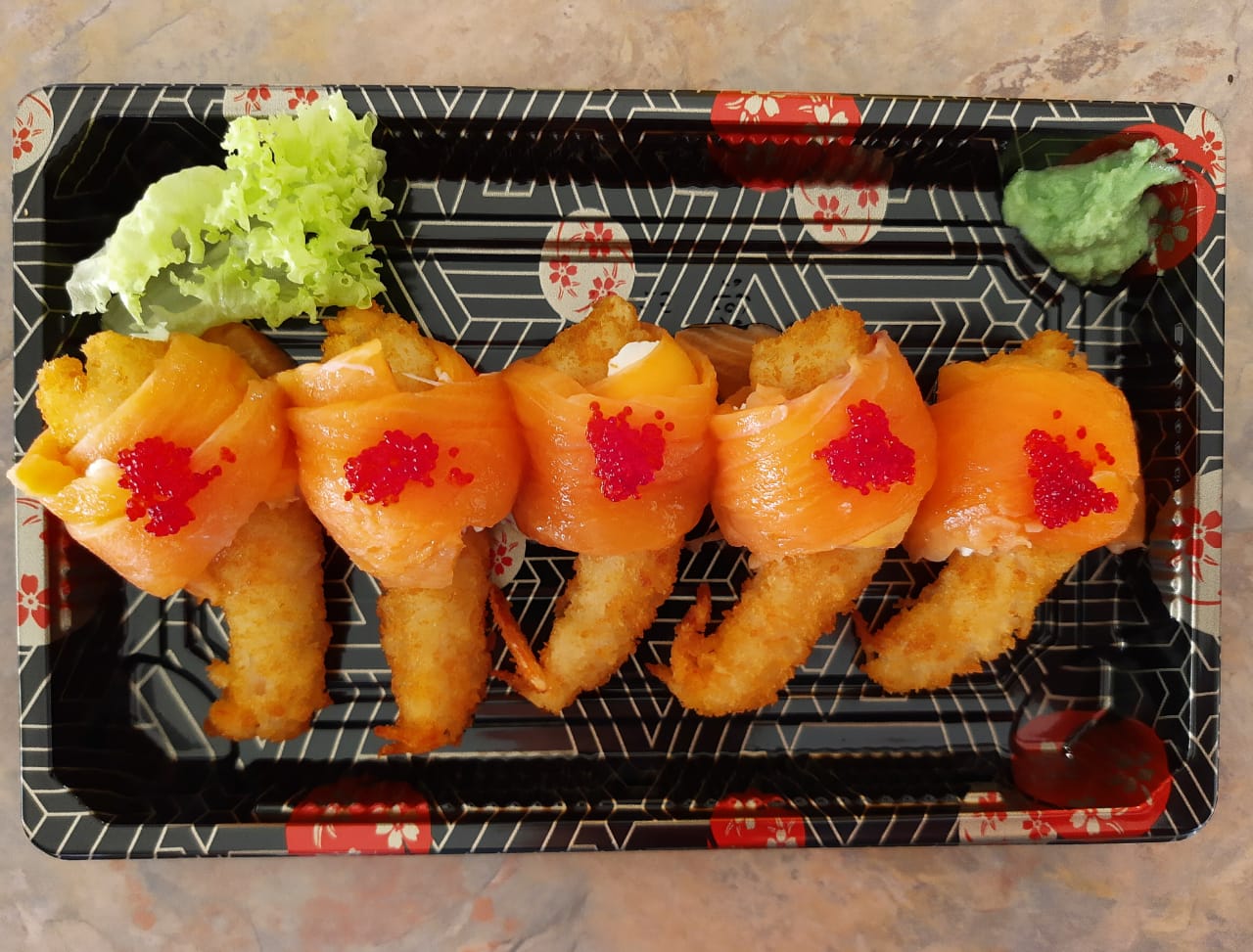 Uramaki de Salmón Frito Cubierto de Aguacate
