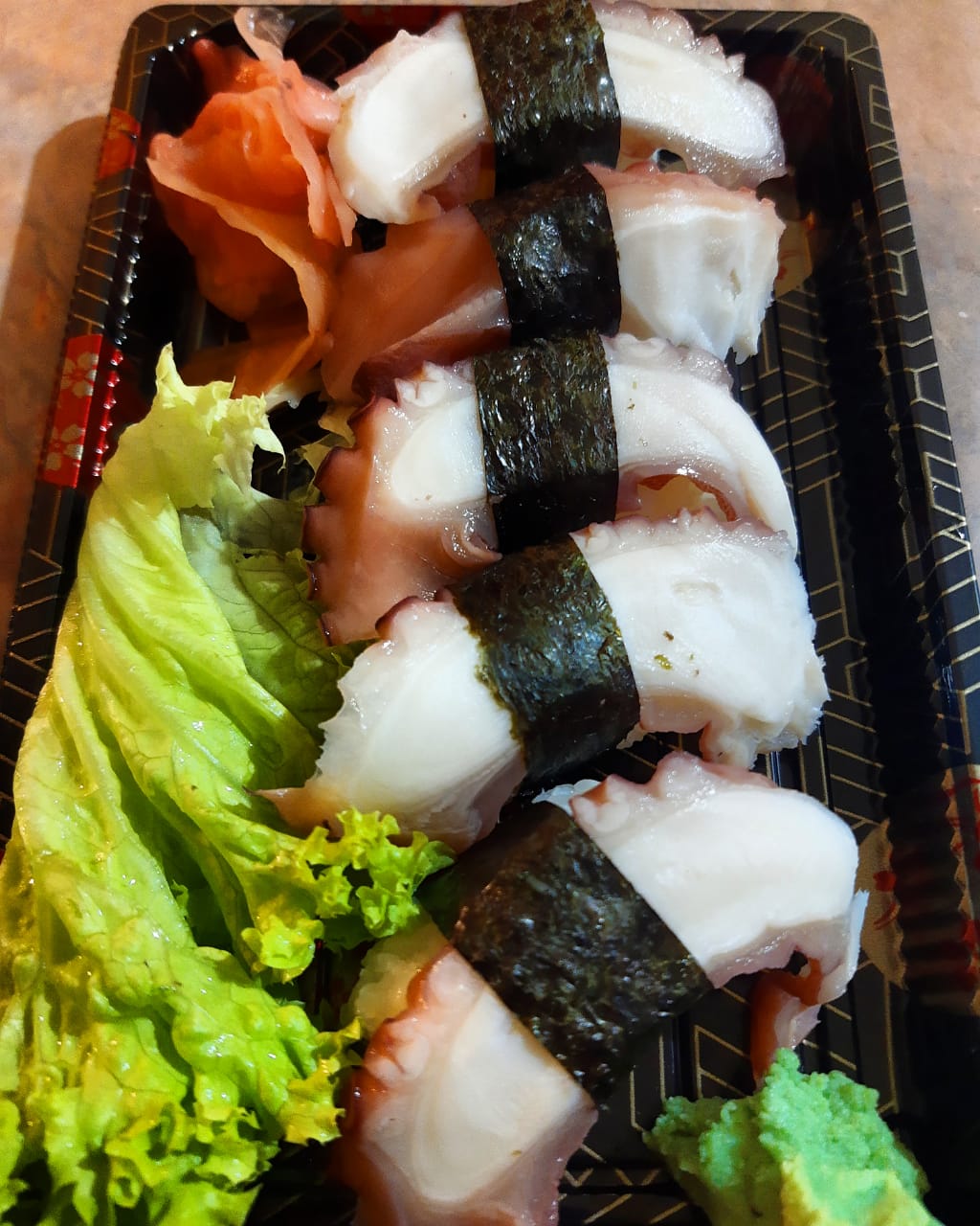 Con 5 unidades de maki de salmón, 2 nigiri de atún y 3 sashimi de pulpo.