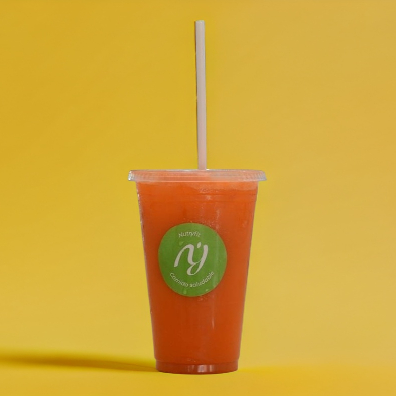 Jugo de betabel, zanahoria, naranja, espinaca y limón.