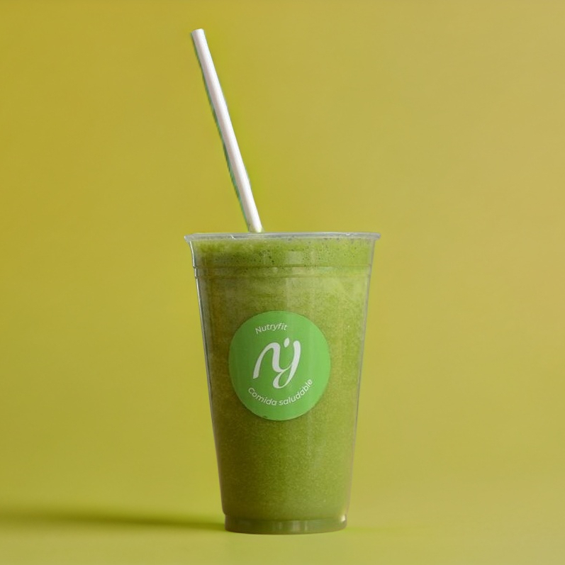 Jugo Verde 16 Oz es piña, naranja, manzana verde, nopal, apio, espinaca, jengibre