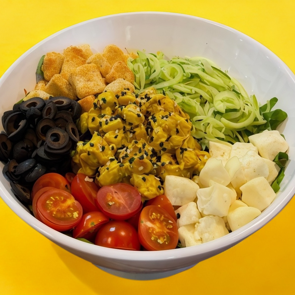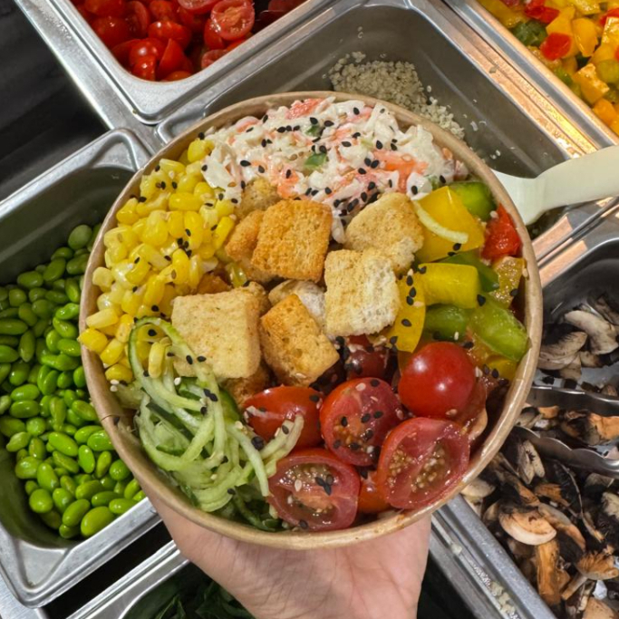 Un bowl lleno de sabor y frescura. Base de arroz con tampico cremoso, acompañado de pepino fresco, pimiento, tomate cherry y elote dulce. 🌽🥒 El toque especial lo pone el aderezo de chipotle, y lo coronamos con crutones doraditos que le dan el crunch perfecto. 😍🔥