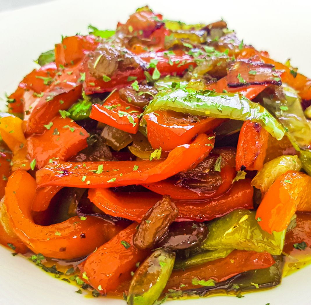 Fideo grueso 200g con carne de puerco ó pollo y verduras, calabaza, repollo, zanahoria y cebollín, salteado con salsa teppanyaki de la casa y especias.