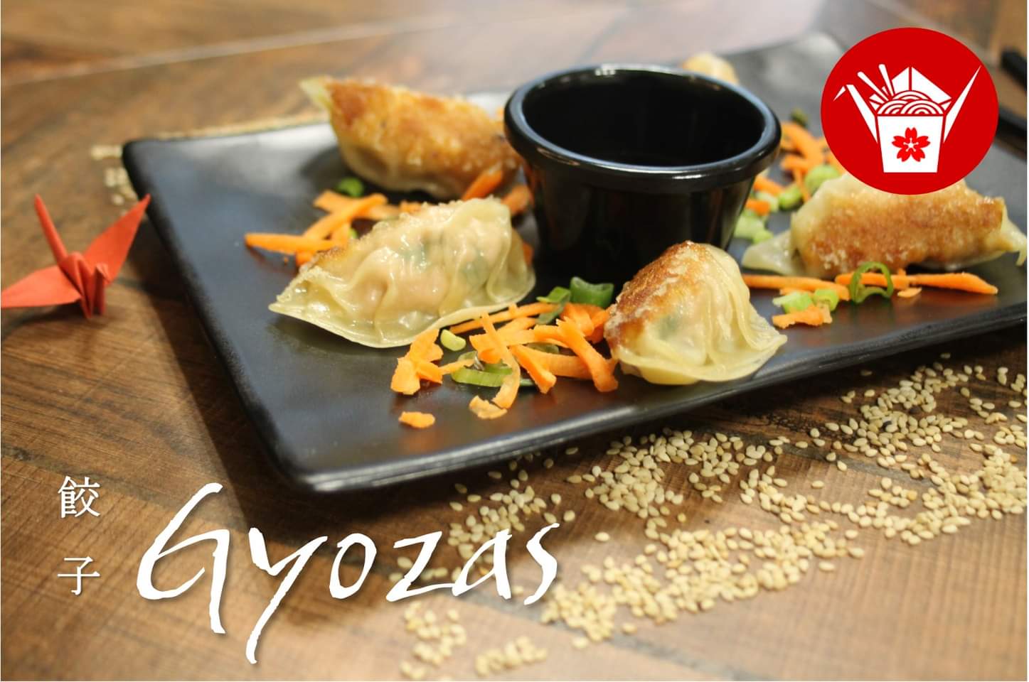 Empanaditas rellenas de carne molida de puerco marinada en salsa de la casa y vegetales, cebollín y col, acompañadas con salsa ponzu.