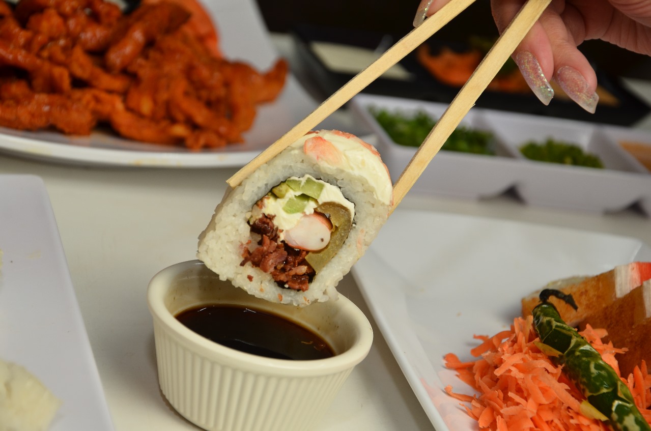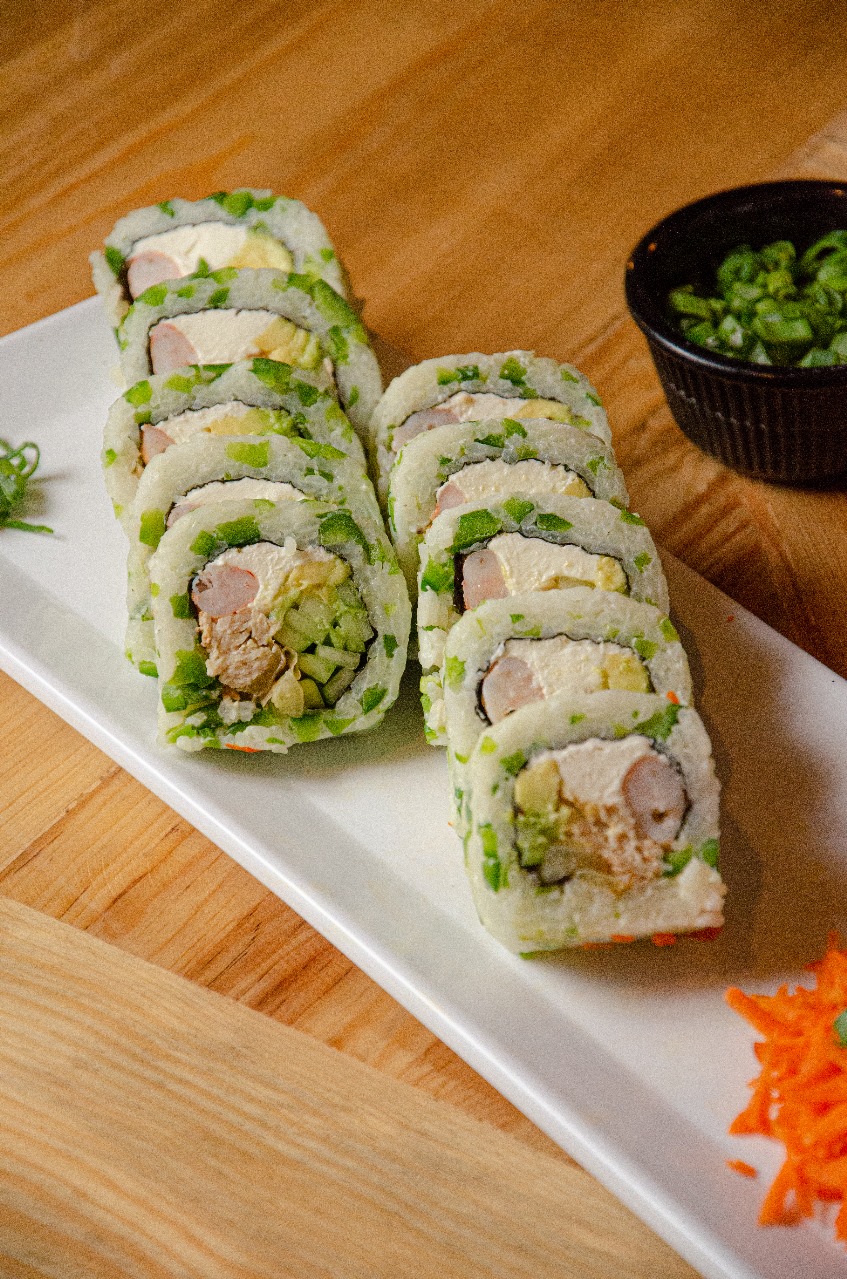 Por dentro: Phila, Aguacate, Pepino y Camaron. Por fuera: Tampico