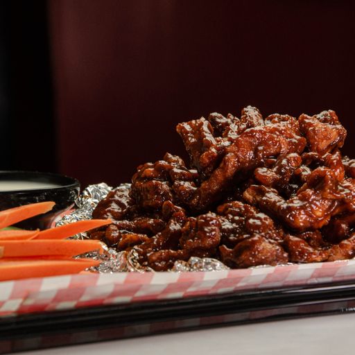 Papas a la francesa cubiertas de queso cheddar y media orden de boneless bañados en la salsa que prefiera