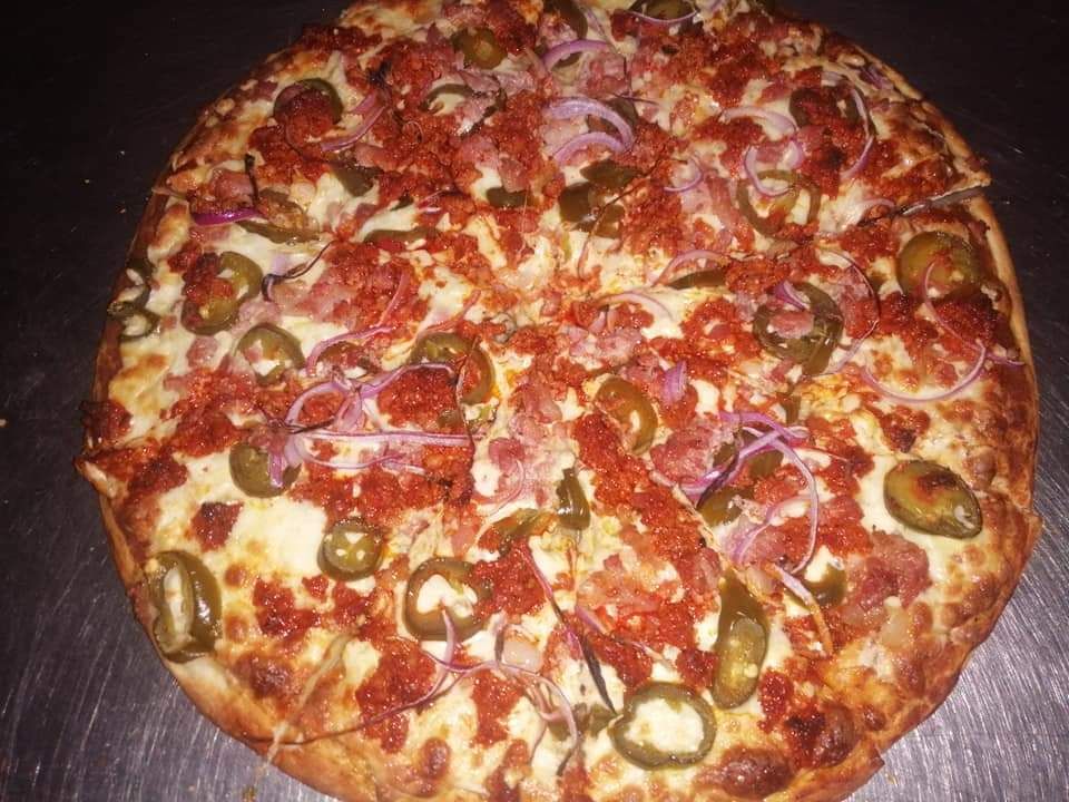 Jalapeño, Chorizo, Tocino, Cebolla Morada