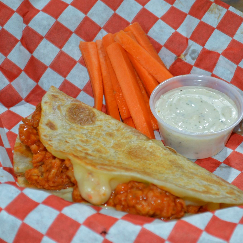 100g de boneless bañados en tu salsa favorita dentro de una tortilla de harina con una fusion de quesos manchego y gouda, acompañado de ranch y zanahoria