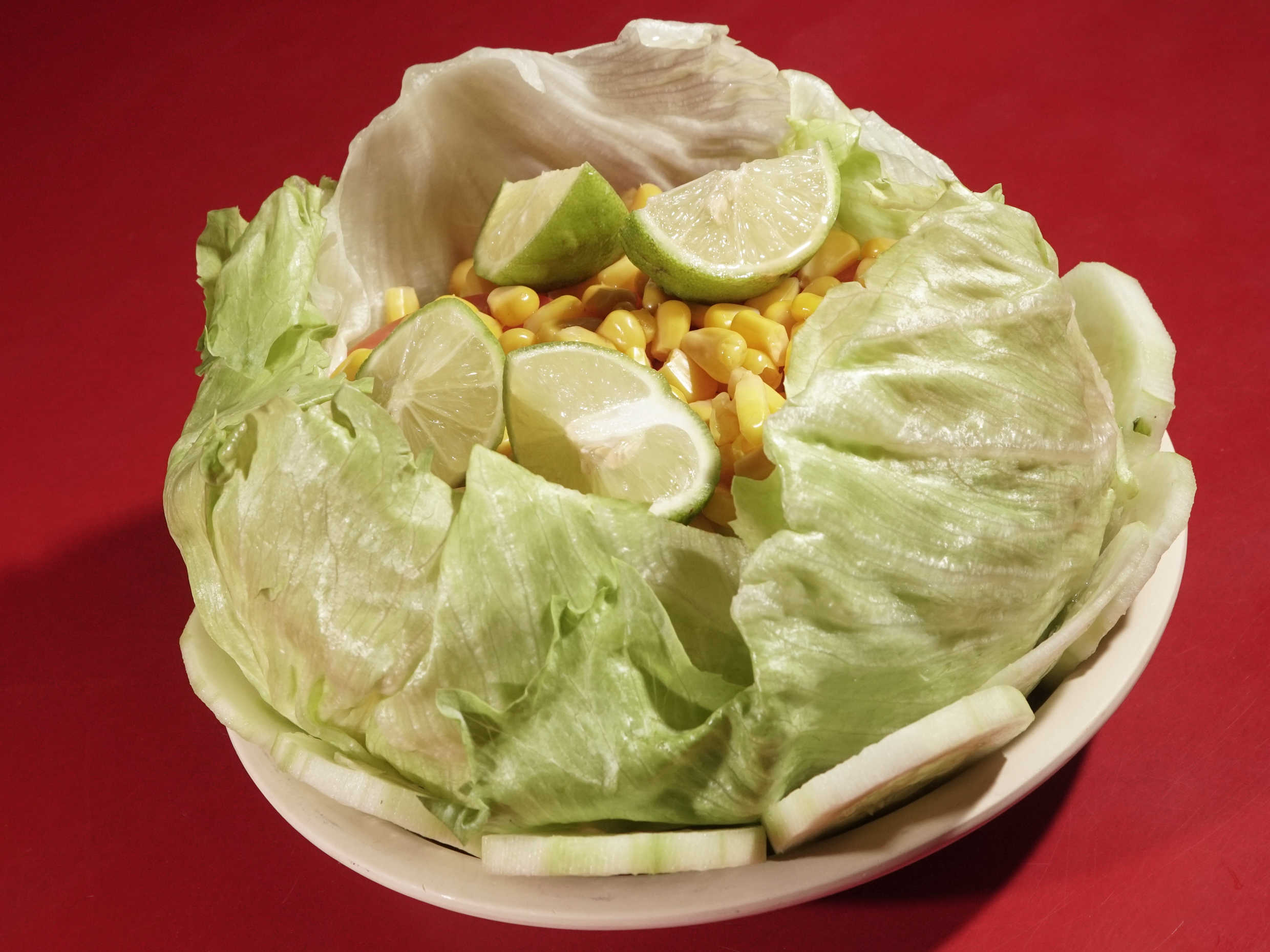 Lechuga,tomate, pepino, col morada, limon y aderezo mil islas