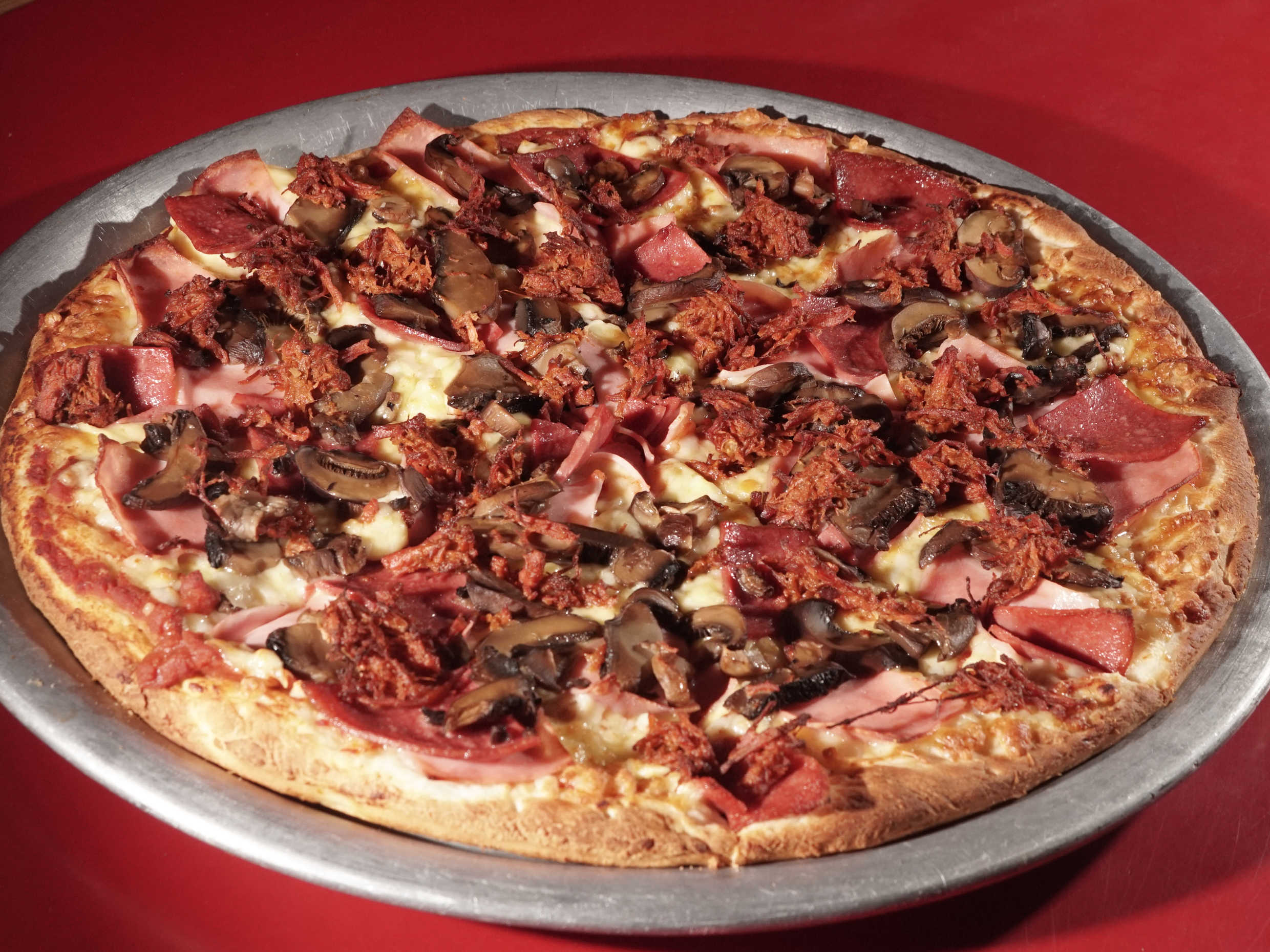 Jamón, salami, champiñones y chilorio