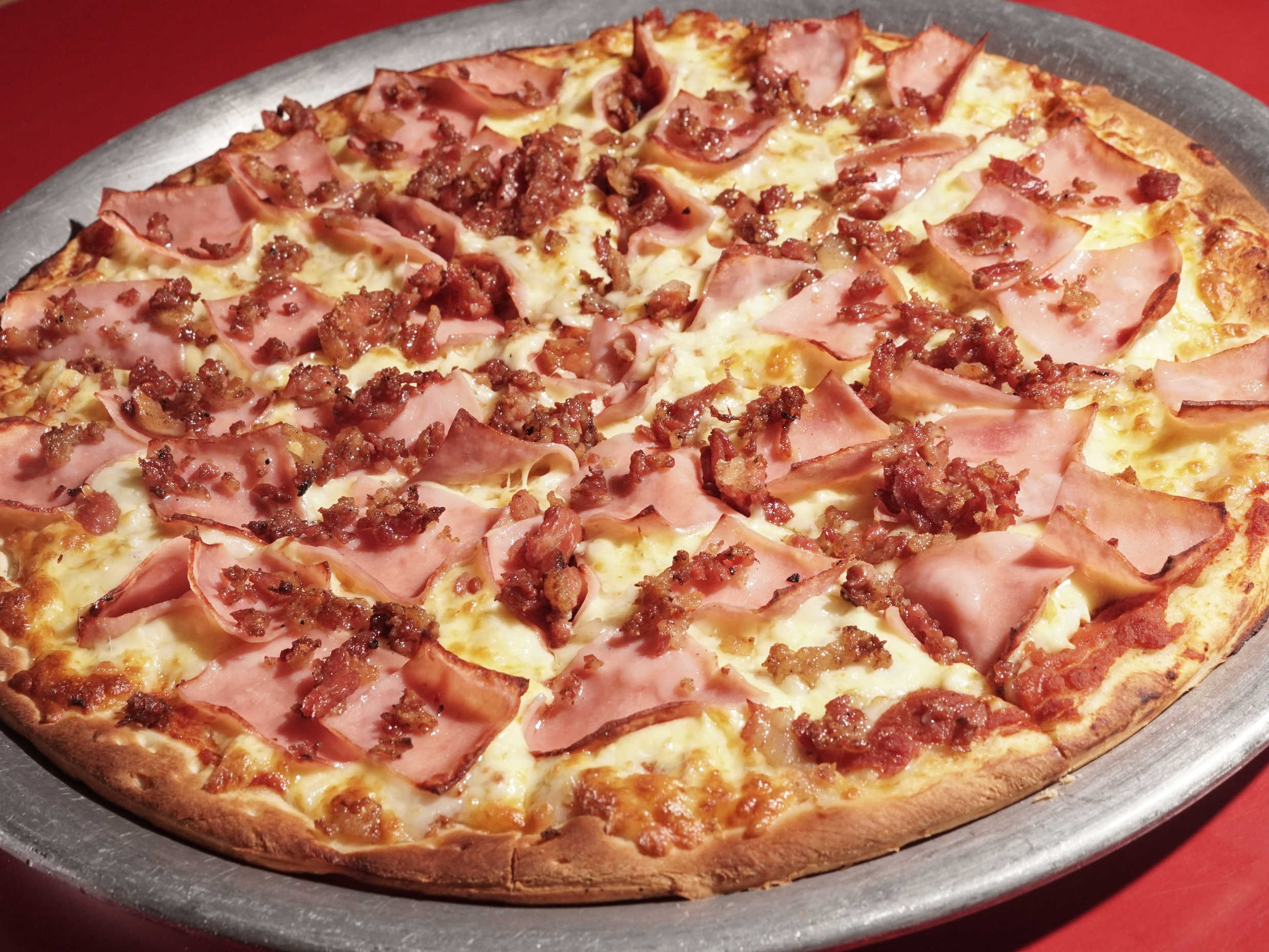 Salami, champiñones, pimiento verde, ostión ahumado y queso extra