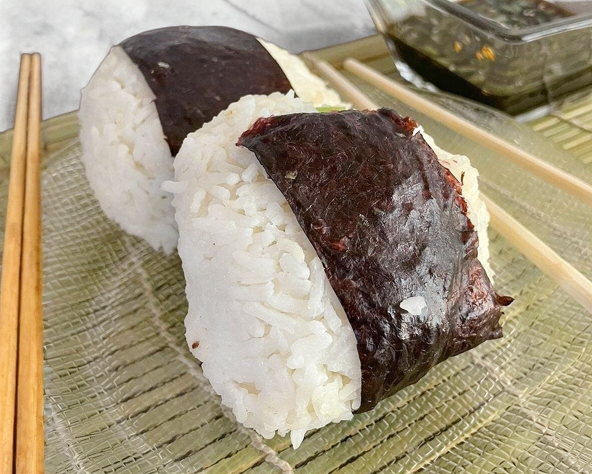 Arroz relleno de tampico (surimi, cebollín y mayonesa), salsa de soya.
