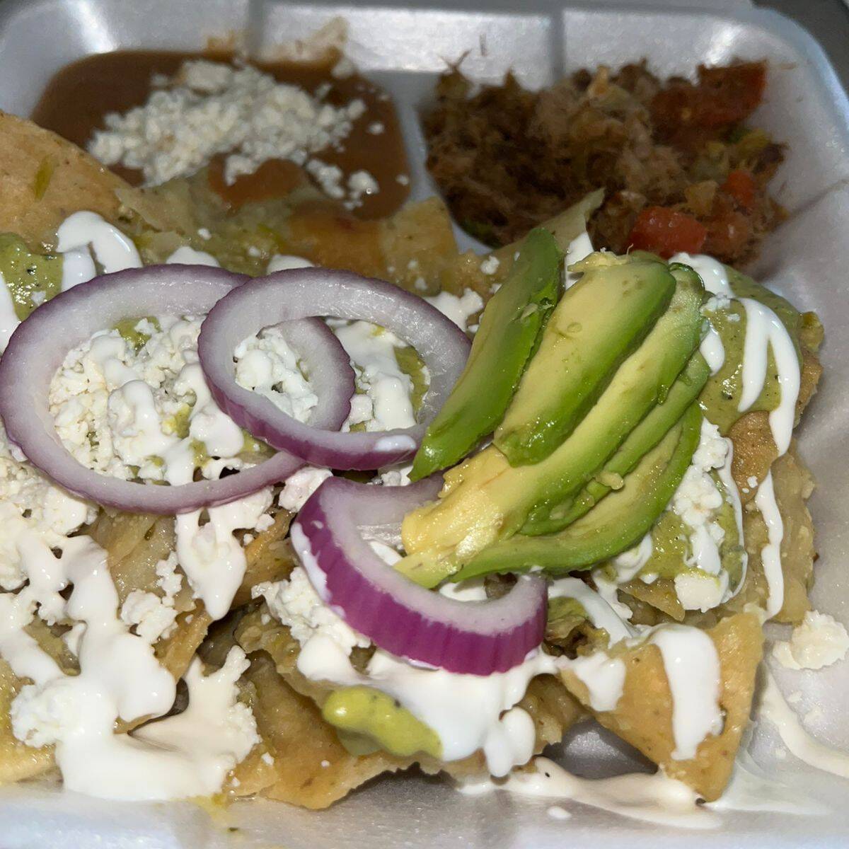 Ricos chilaquiles (salsa a elección) acompañados de frijoles