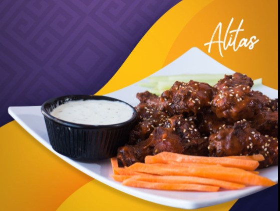 Alitas y boneless con salsa a elegir, cubitos manchego, papas sazonadas y jalapeños hot hot.