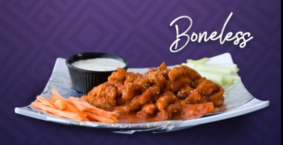 Pechuga de pollo en trozo empanizada bañada en la salsa de preferencia y aderezo ranch.