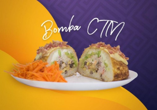 Con arroz frito rellena de camarón pulpo marlín tampico.
