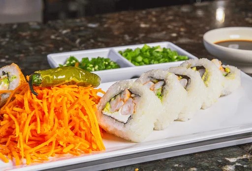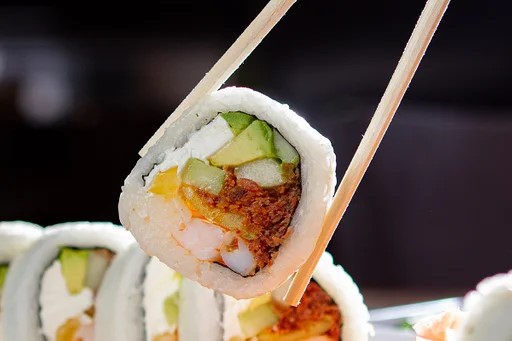 Pepino, aguacate, phila y un ingrediente a elegir res, marlín, tocino, pollo, plátano, chile toreado, camarón, surimi o tampico.