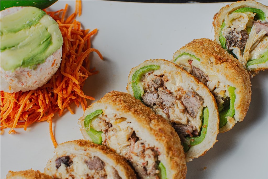 Pepino, aguacate, queso phila, camarón, pollo y res.