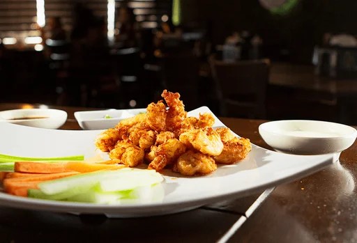 Tiras de pechuga de pollo empanizadas bañadas en salsa búfalo, bbq o mixta.