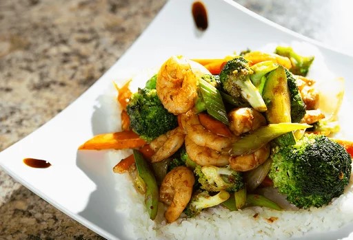 Riquísimas verduras salteadas cebolla, brócoli, zanahoria, chile morrón, apio y calabaza, servida en una cama de arroz blanco o arroz frito, bañado con salsa de la casa y ajonjolí espolvoreado. Ingredientes a elegir camarón, pollo o res extras por $30.