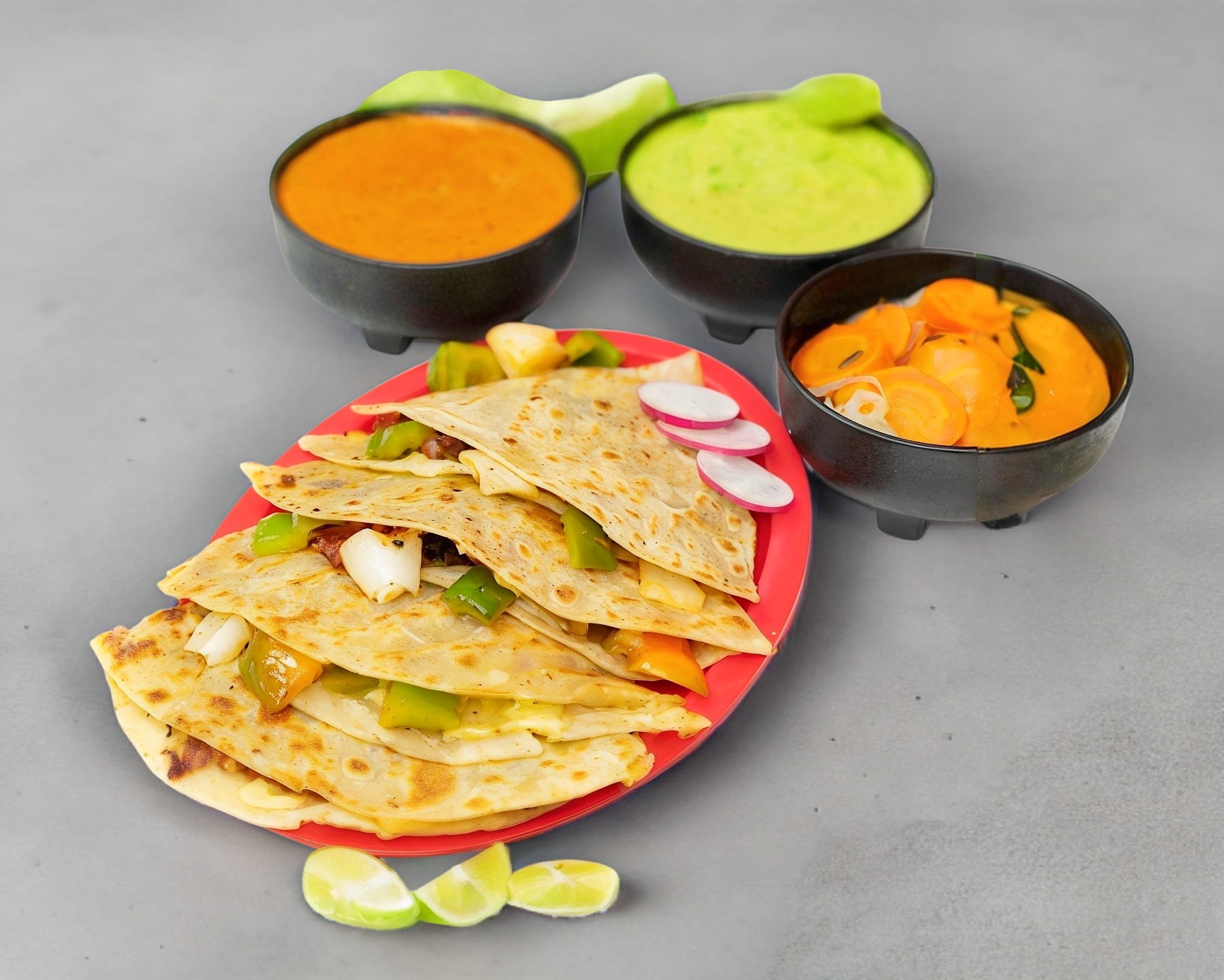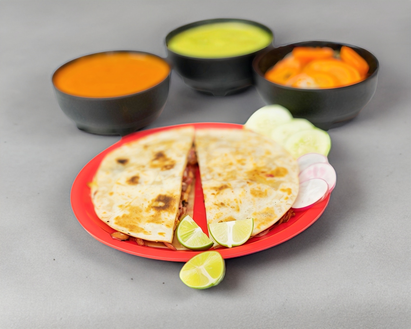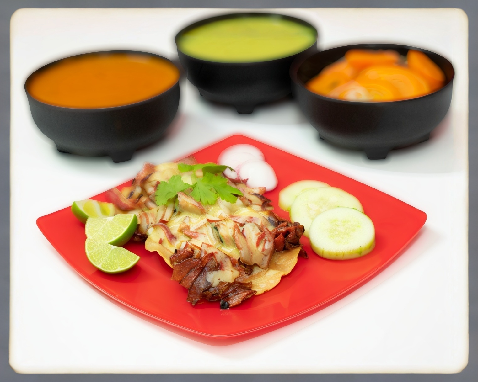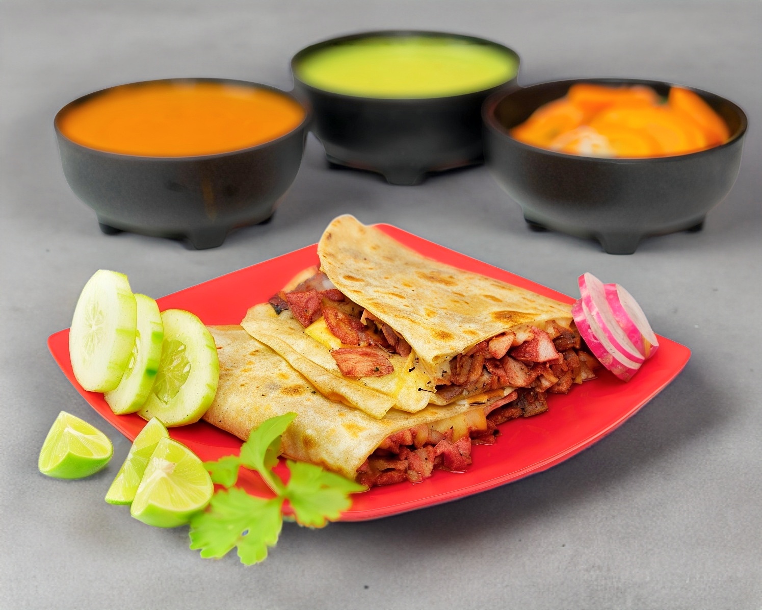Morrón, cebolla, tocino, chorizo, pastor y queso gratinado. 1/2 Orden.