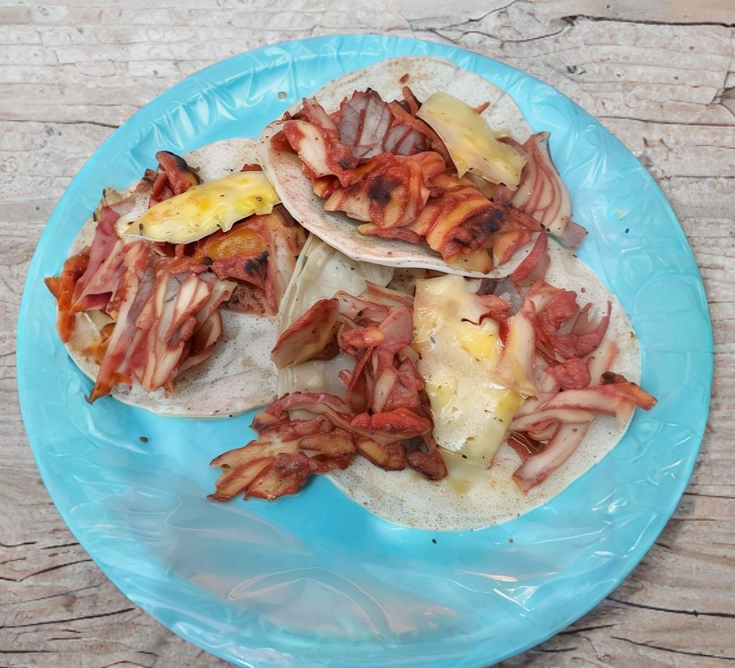 Carne al pastor y queso partida en dos