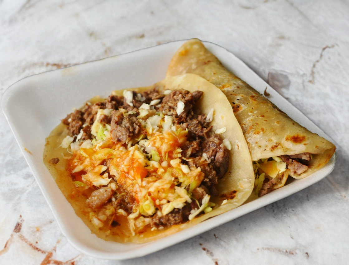 Carne, mantequilla, papa y queso, tortilla a escoger entre harina, maíz o dorada.