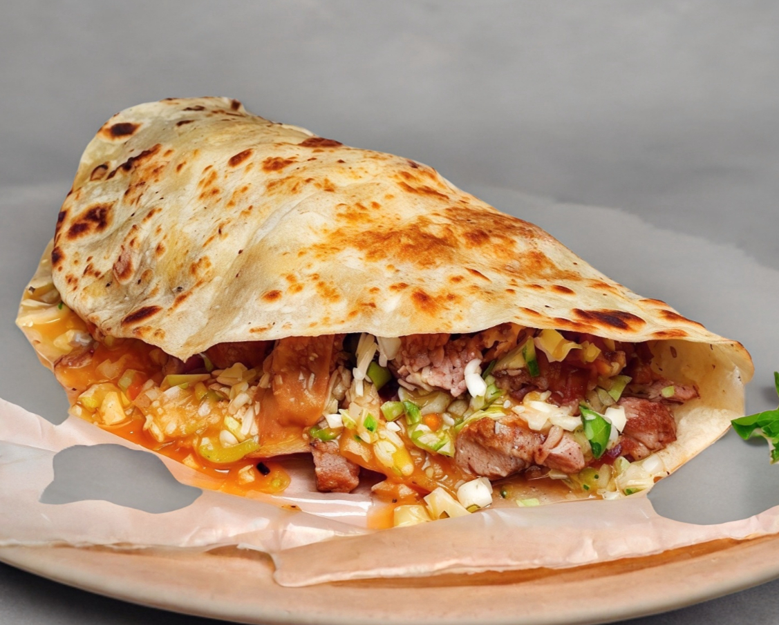 Taco de carne adobada con tortillas a elegir harina, maíz o dorados
