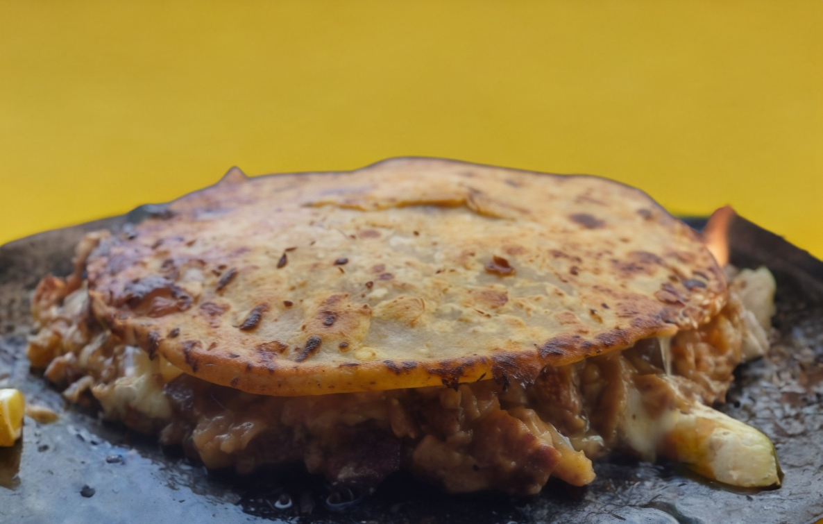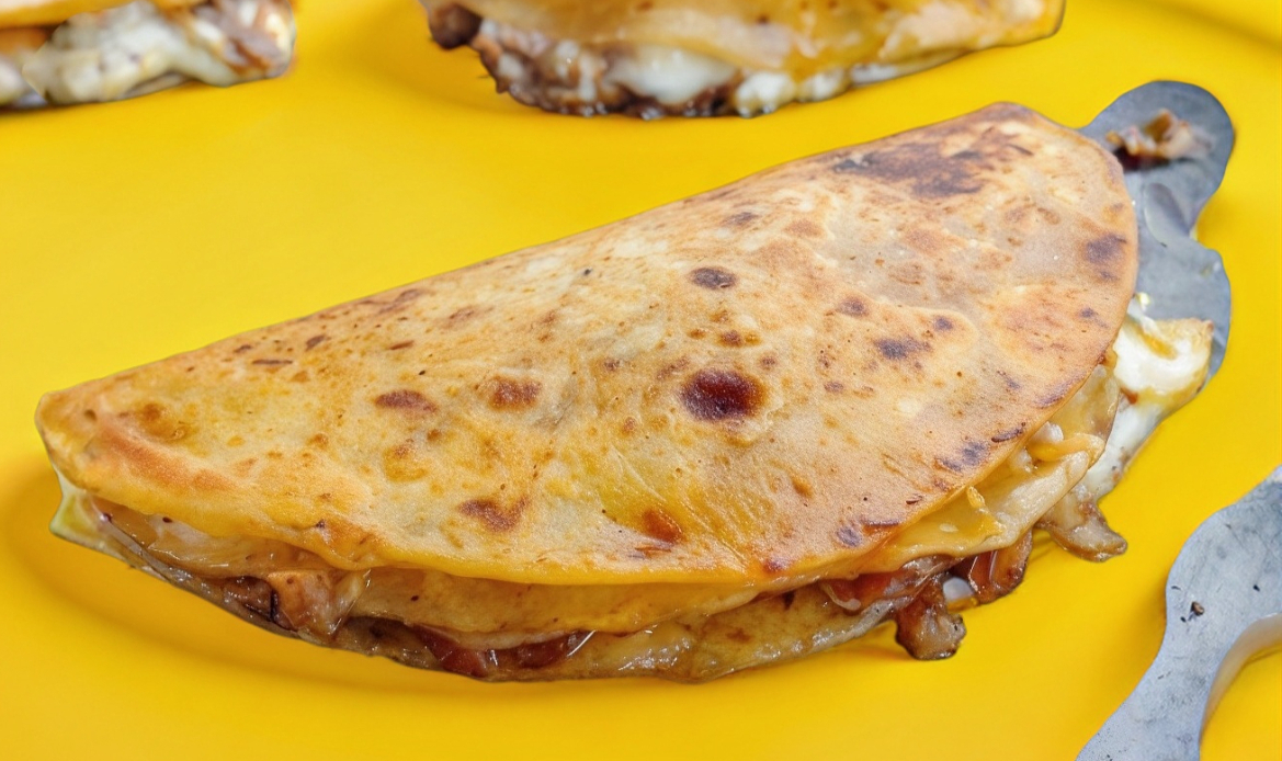 Quesadilla sincronizada con tortilla de harina rellena del ingrediente de tu elección.
