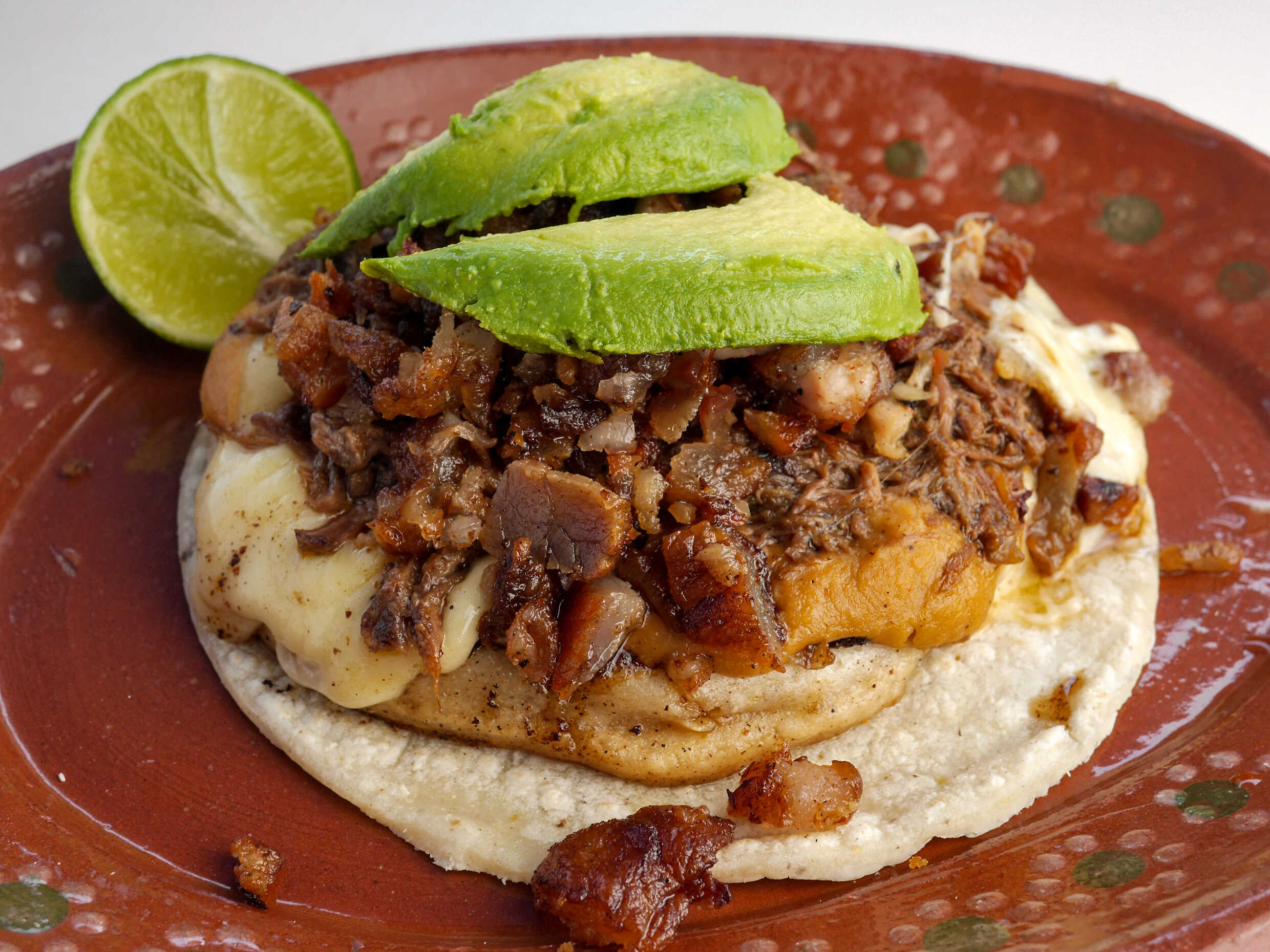 Gordita en la base asientos, frijol y queso, coronada con los ingredientes de tu preferencia.